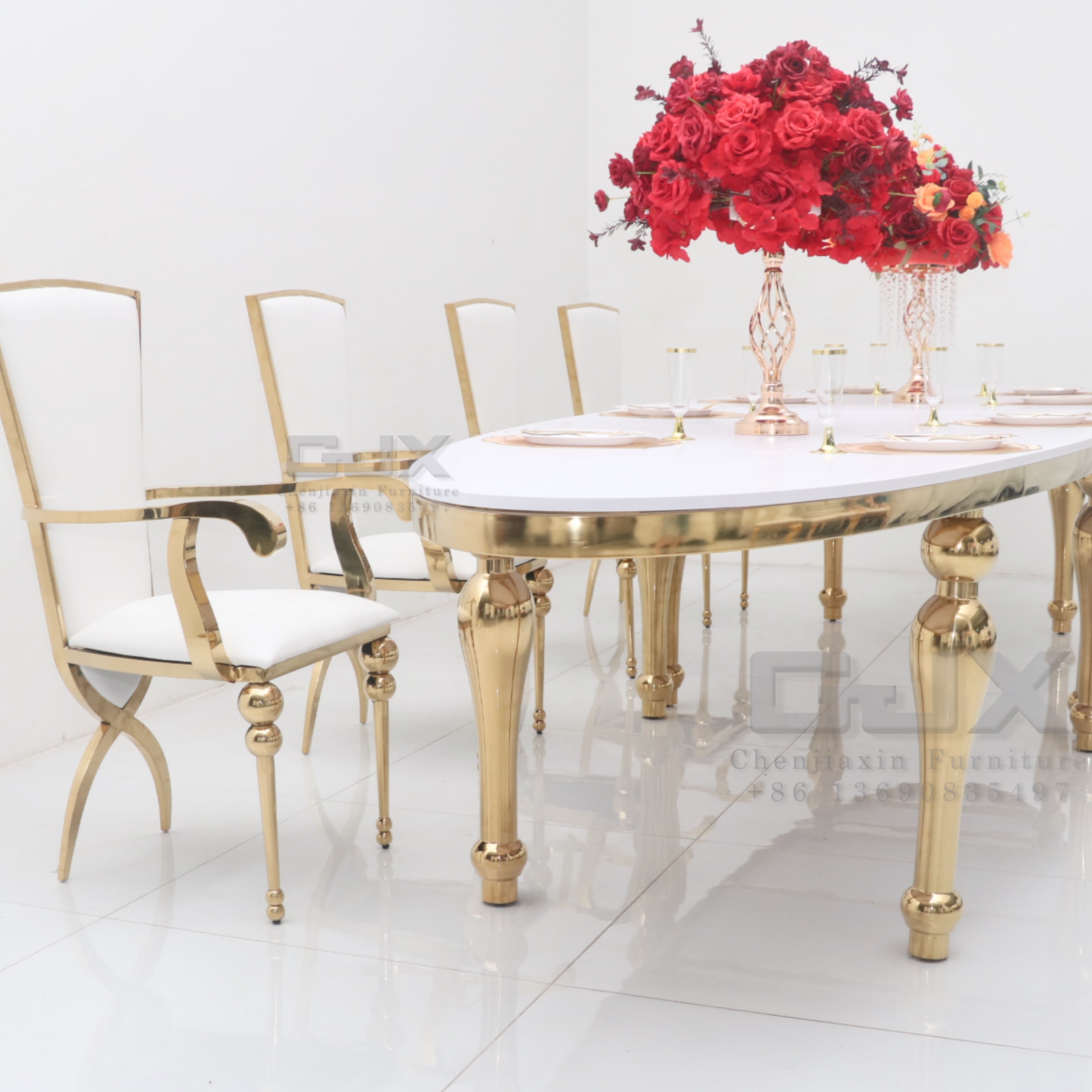 Factory Custom Luxury Outdoor Furniture Stainless Steel Chairs Shiny Gold Party