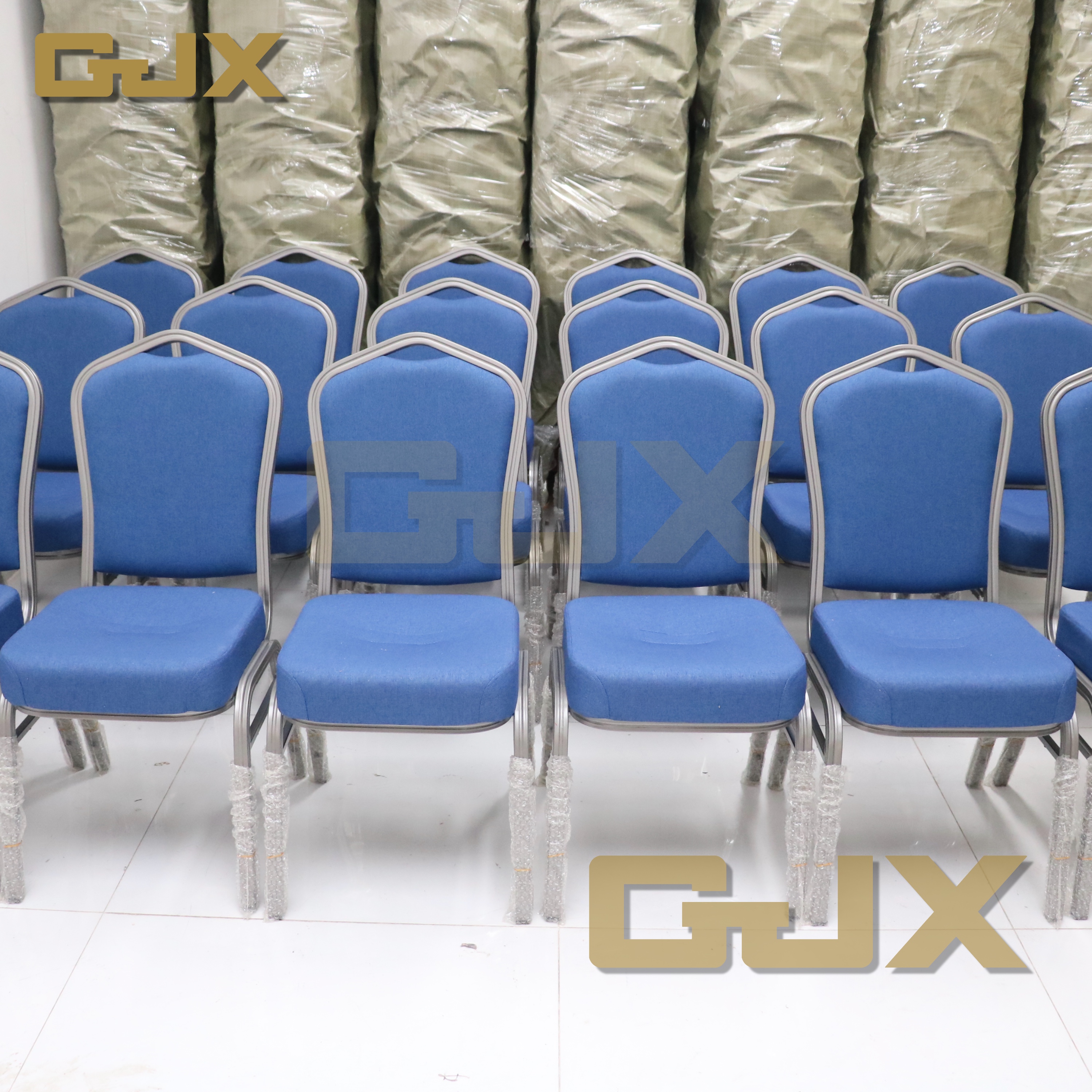 Furniture Banquet Hall Stackable Blue Thickened Party Chairs