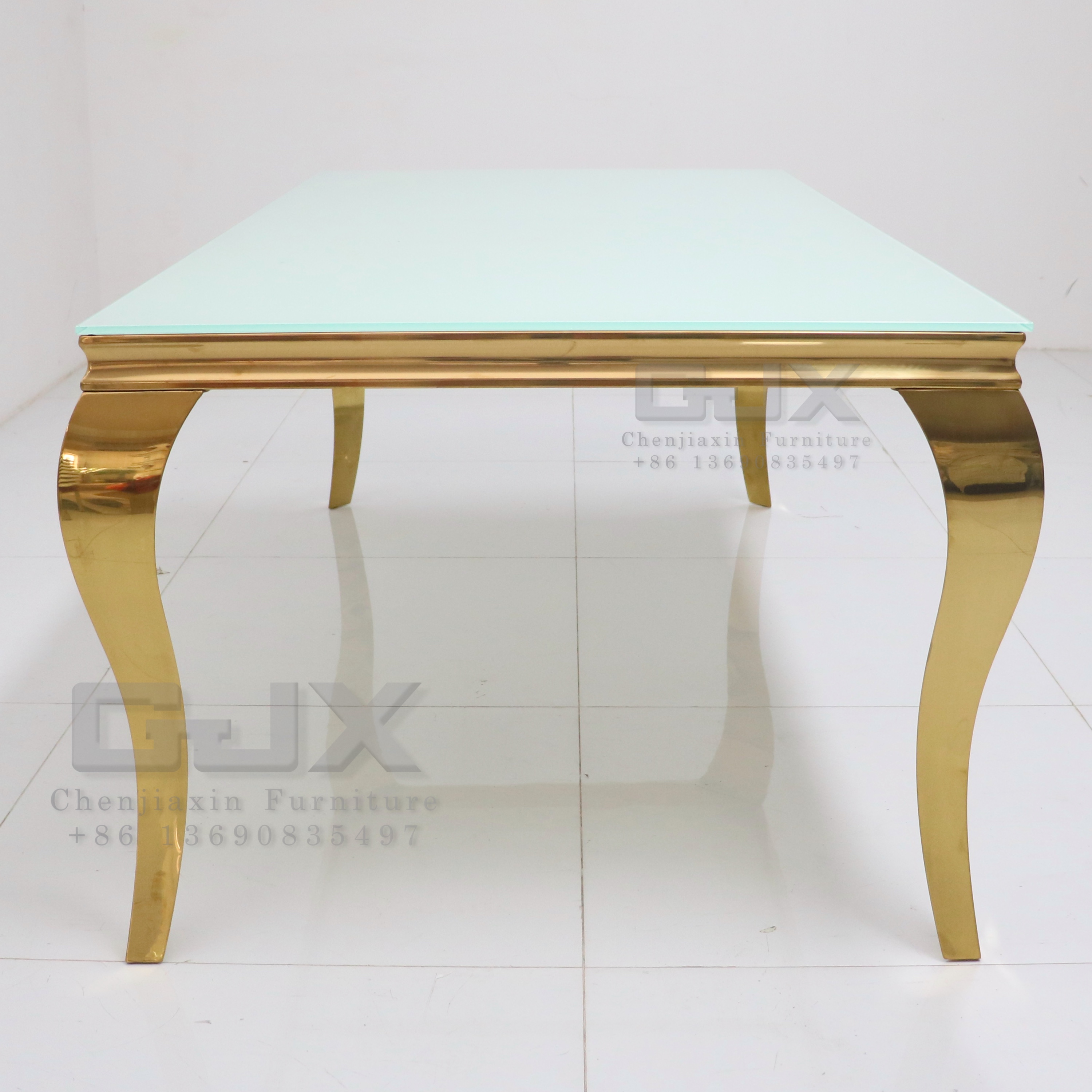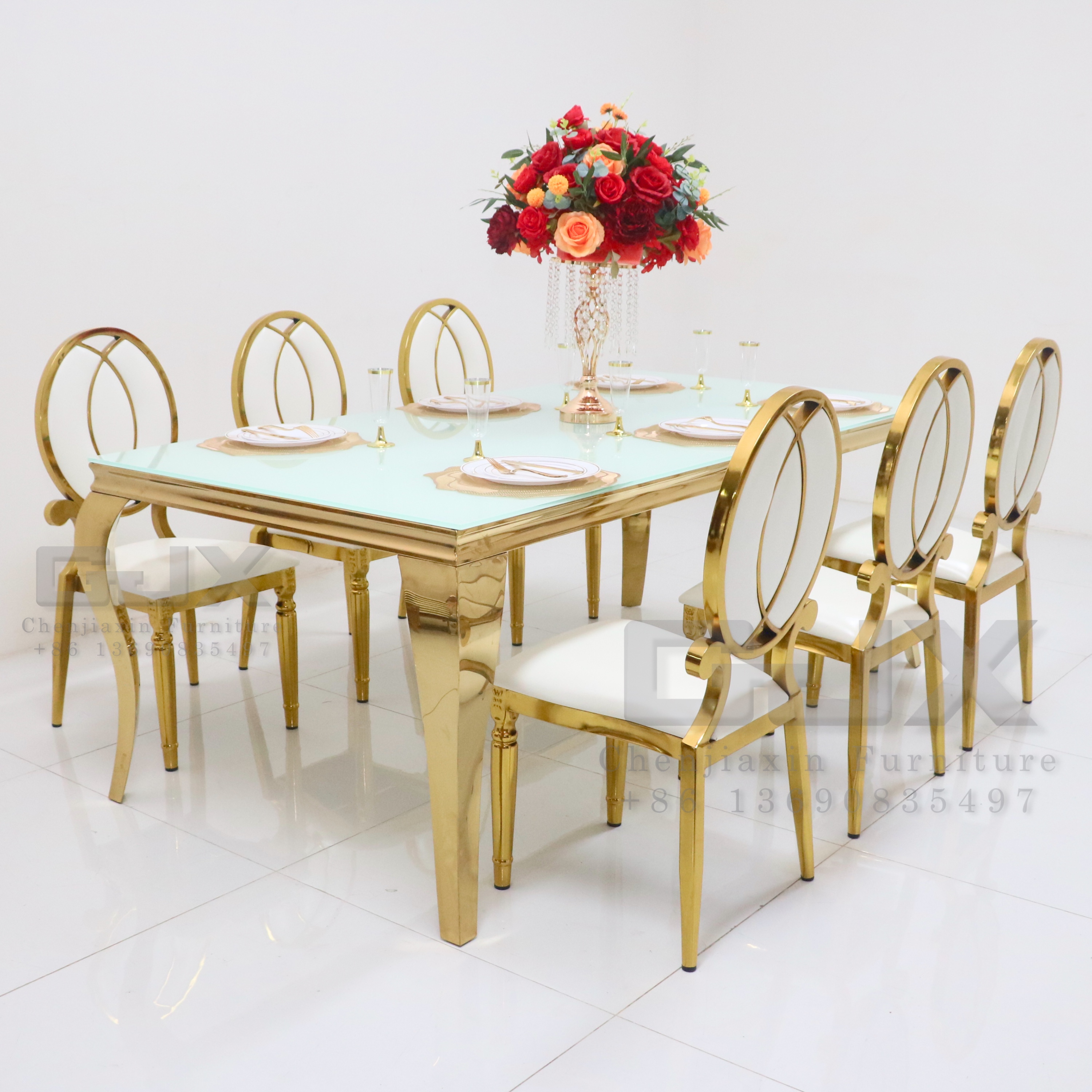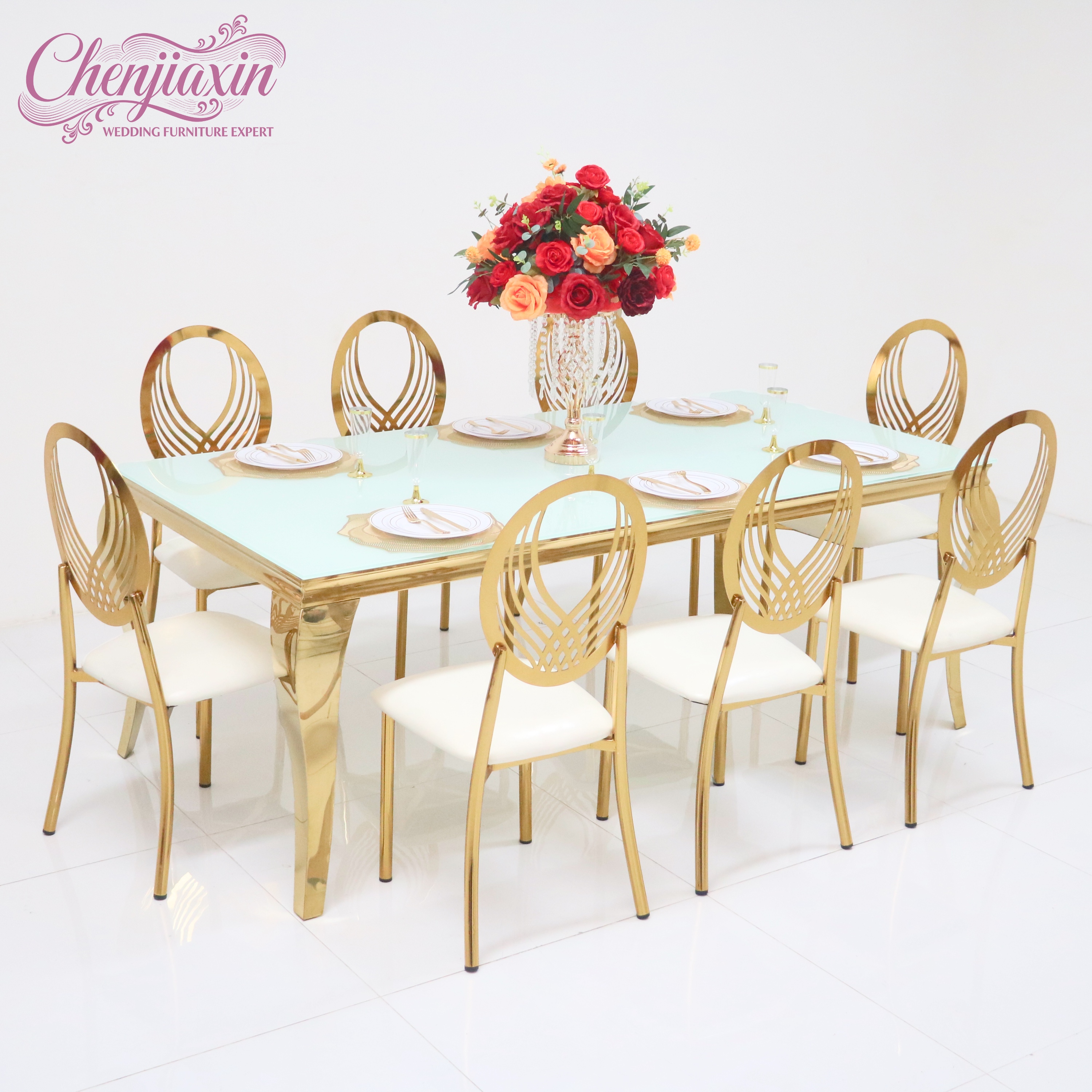 Modern Luxury Rectangular clear Glass Gold Stainless Steel Wedding Dining Hall