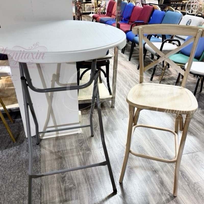 White HDPE High Folding Chairs Set Round Outdoor Garden bar Tables for Wedding Events