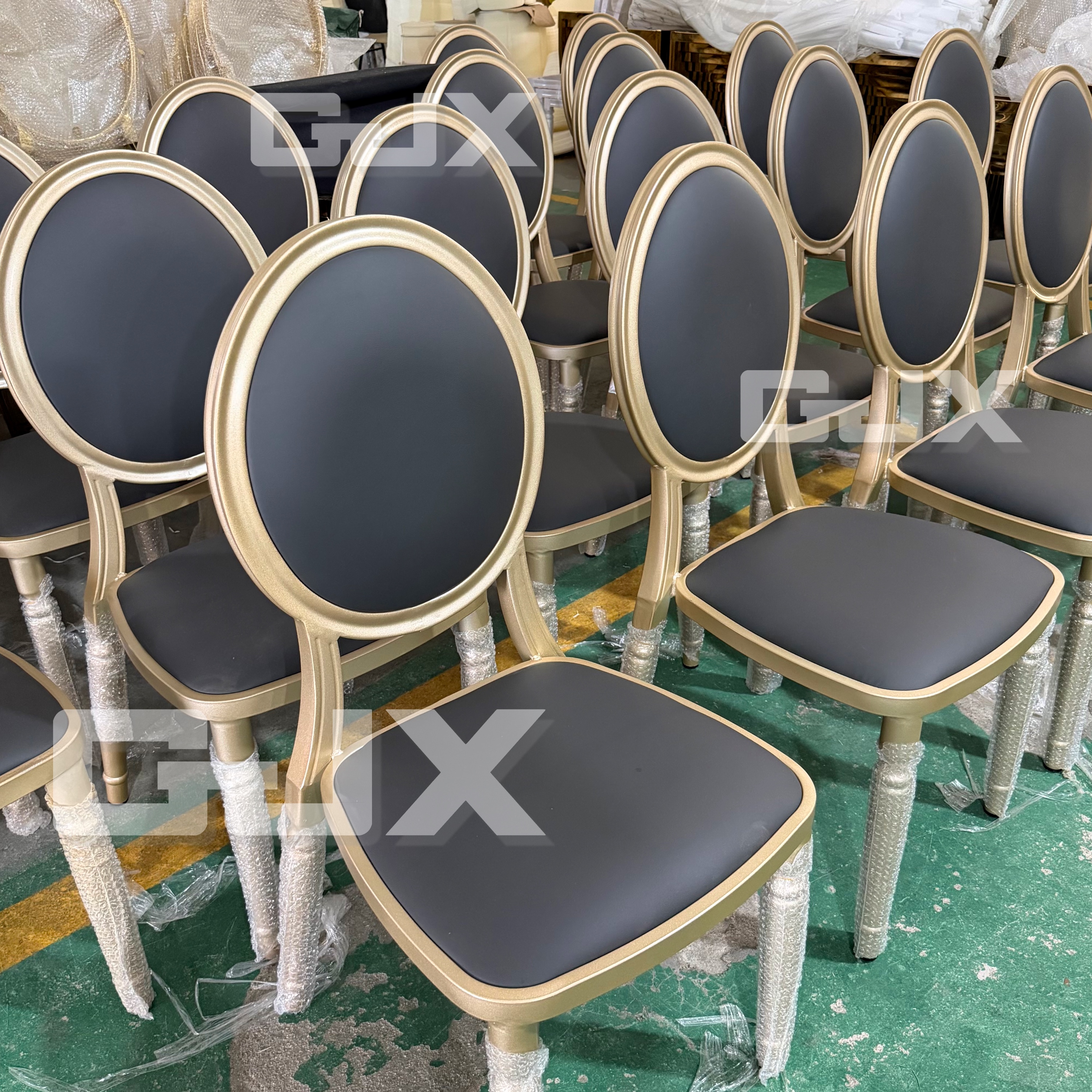 Wholesale Luxury Louis Chair Event Furniture Modern Stackable Black Leather